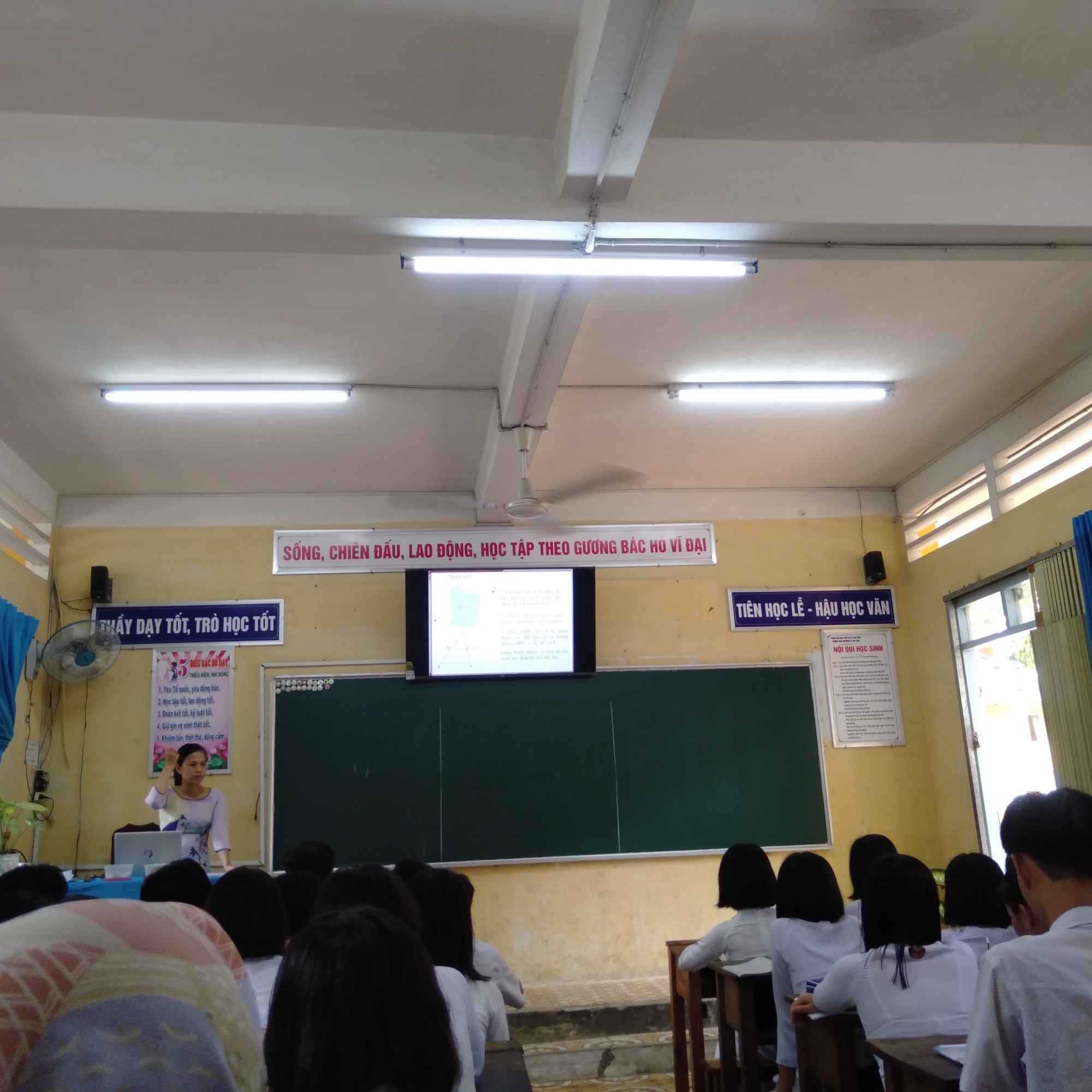 The second step is teaching practice. After knowing about the math schedule, the class situation, examples of teaching plans, and the topics that I have to teach, next is doing practice teaching. This step is a very long-awaited moment and becomes the core activity of the practicum. In this teaching practice, I was given the opportunity to teach in grades 6 and 8. This teaching practice was held in the second and third week while I was in Vietnam.