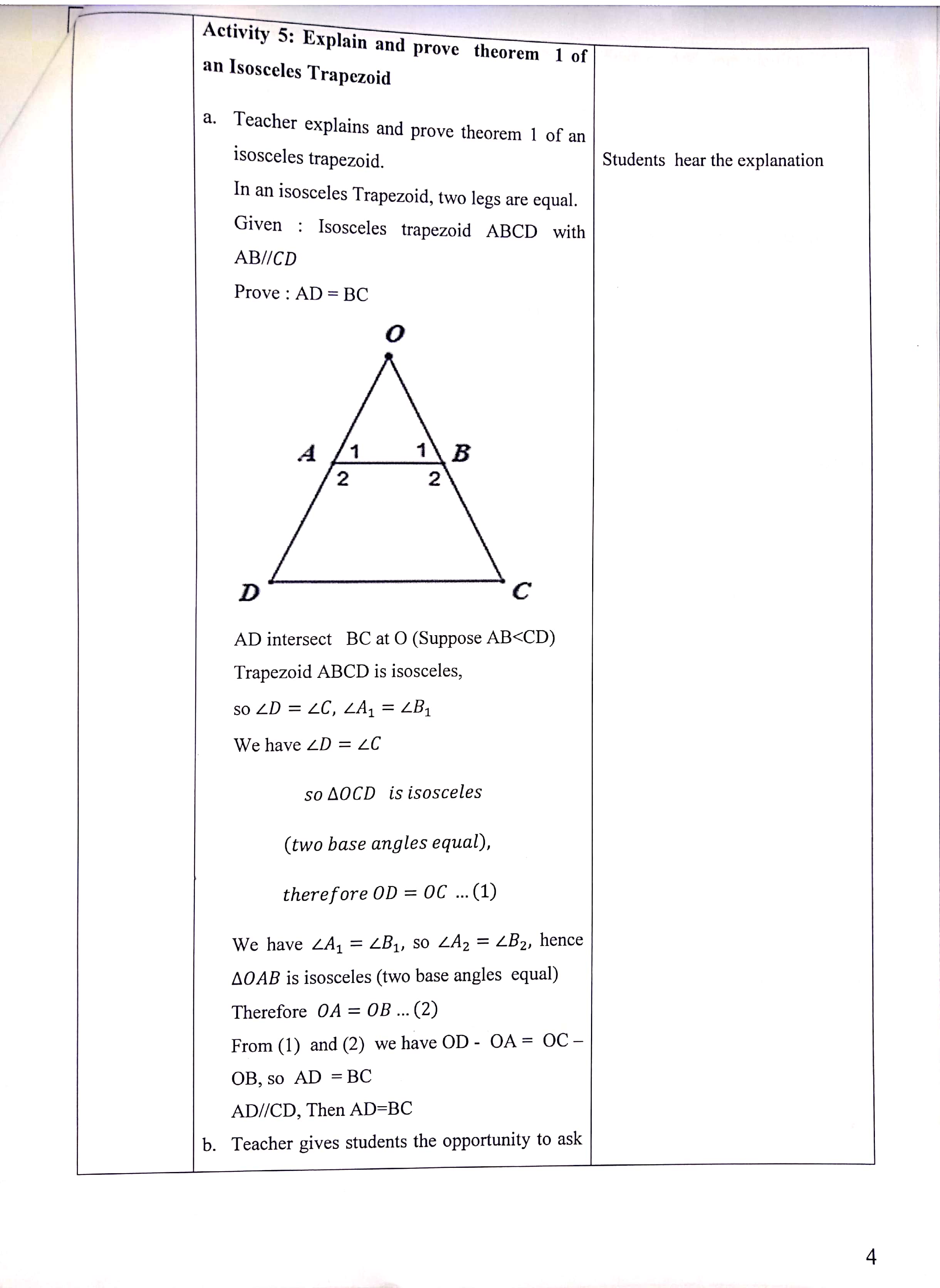 Teaching Plan of Isosceles Trapezoid