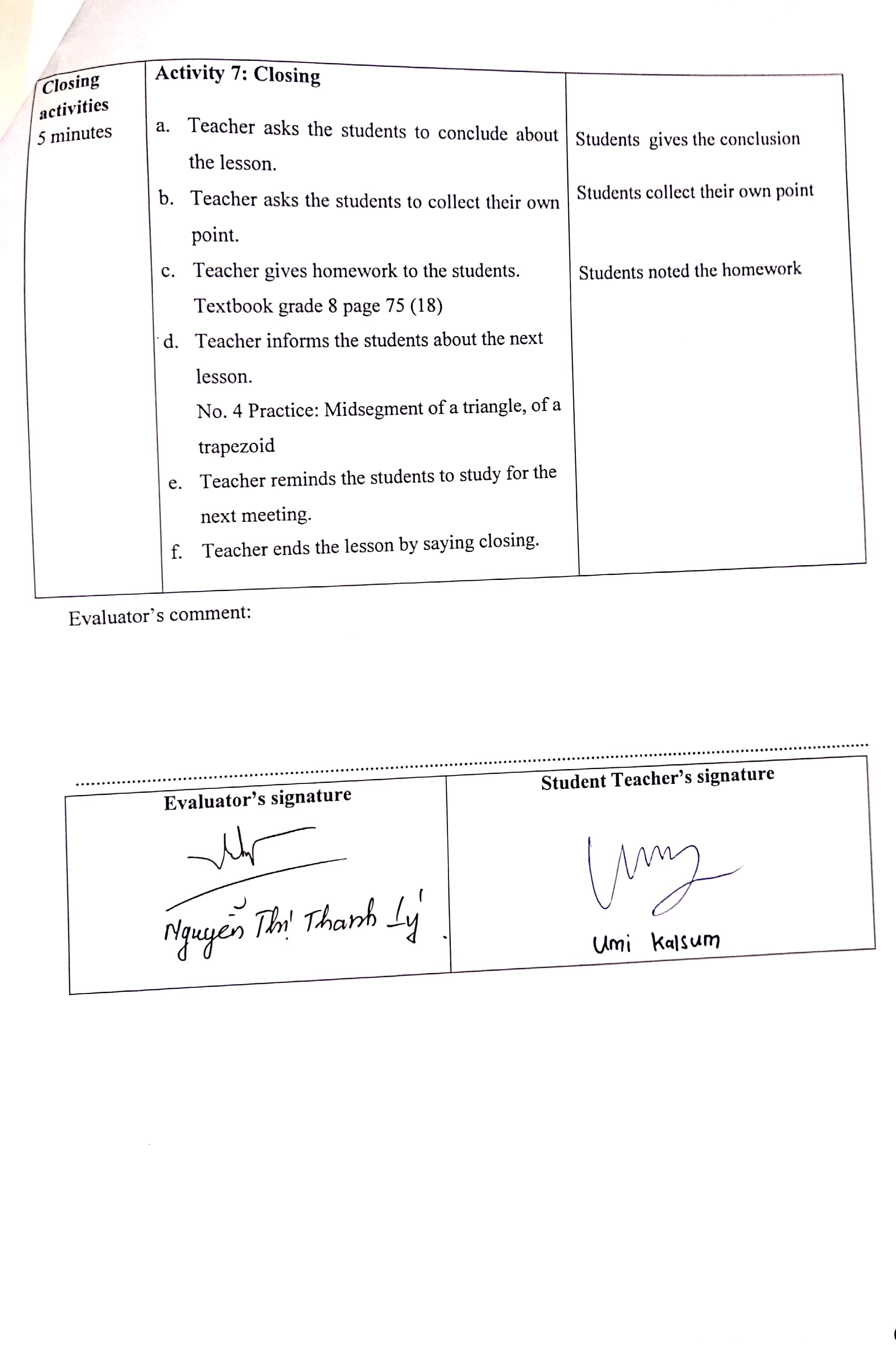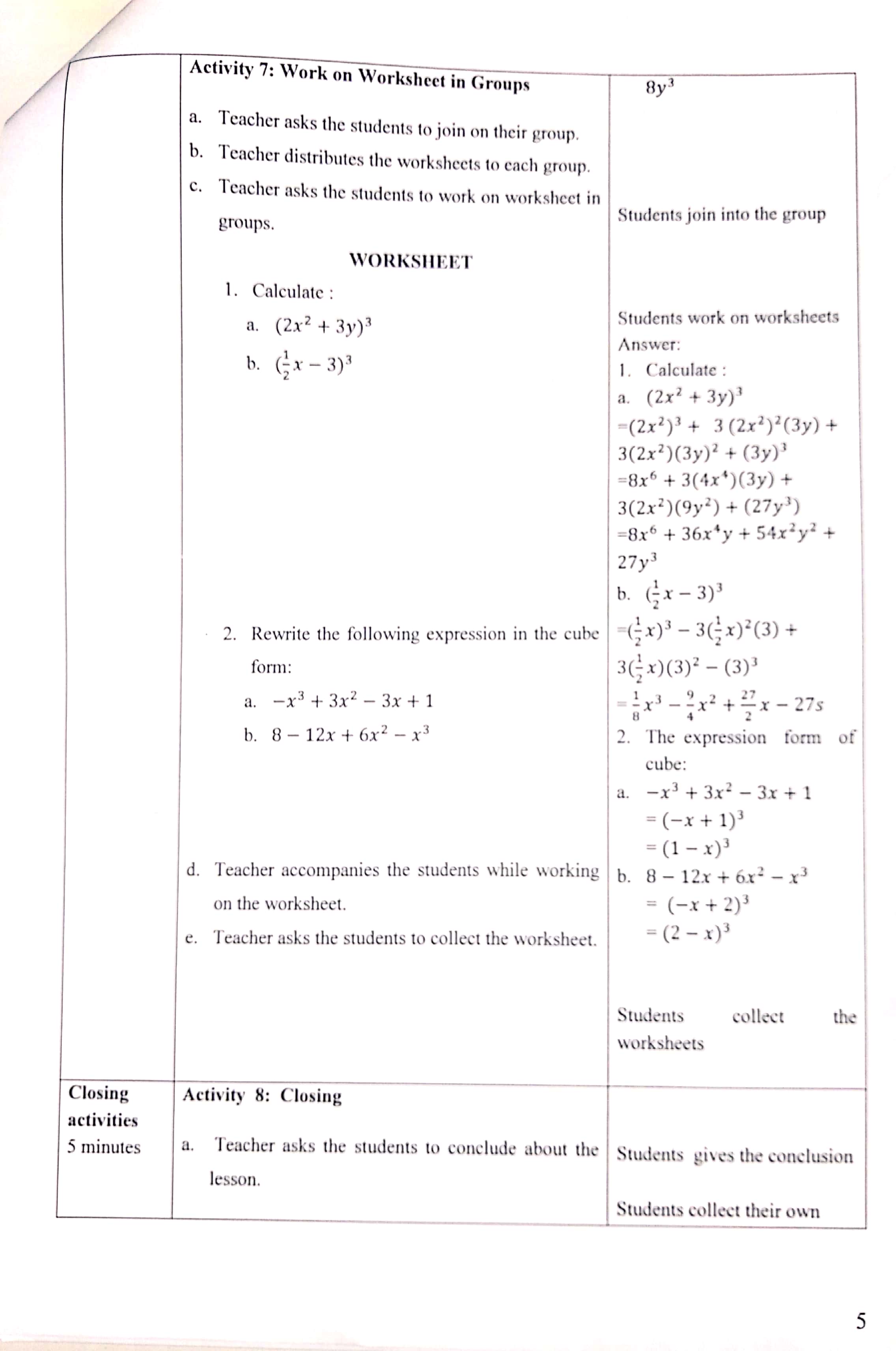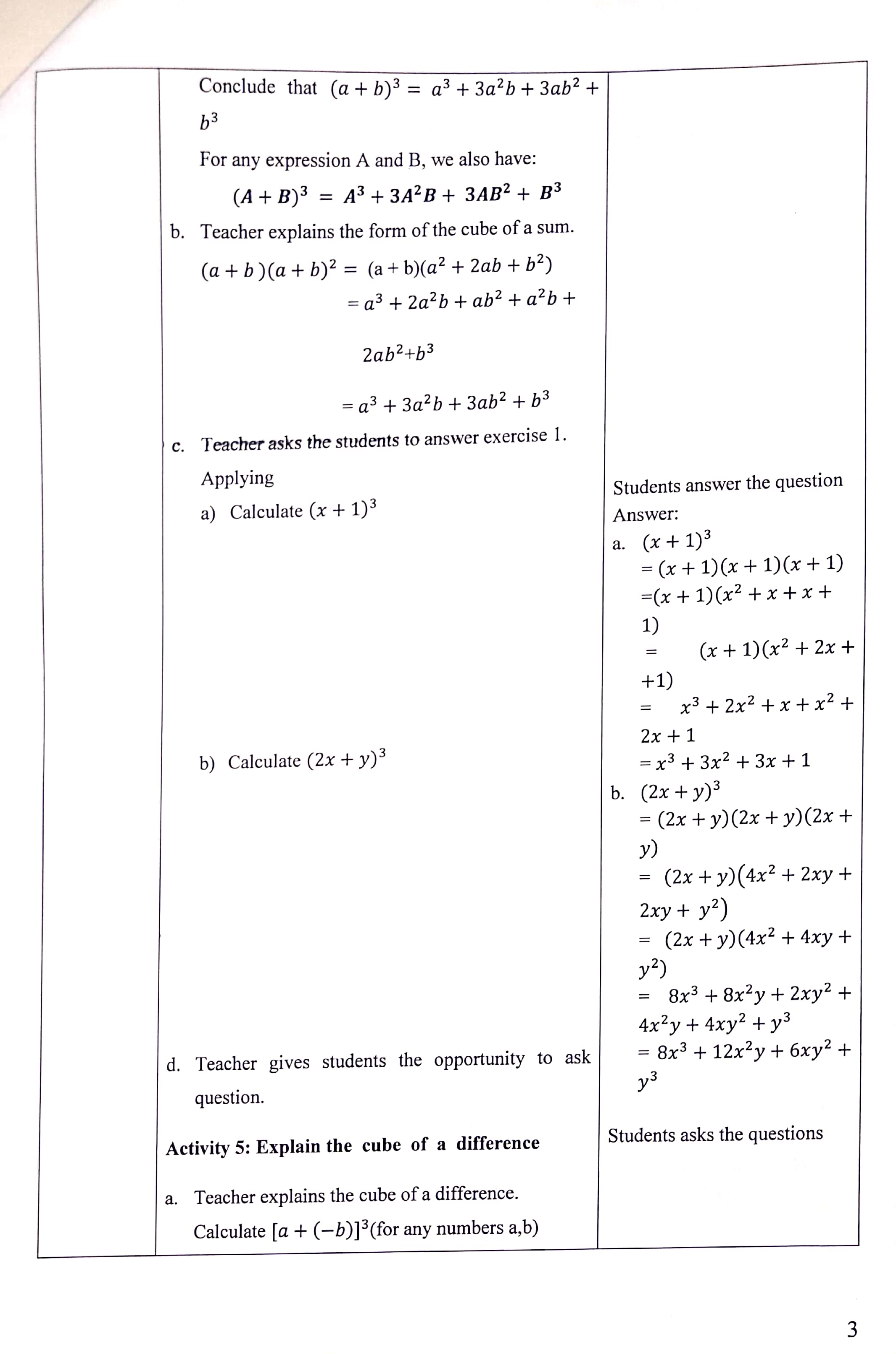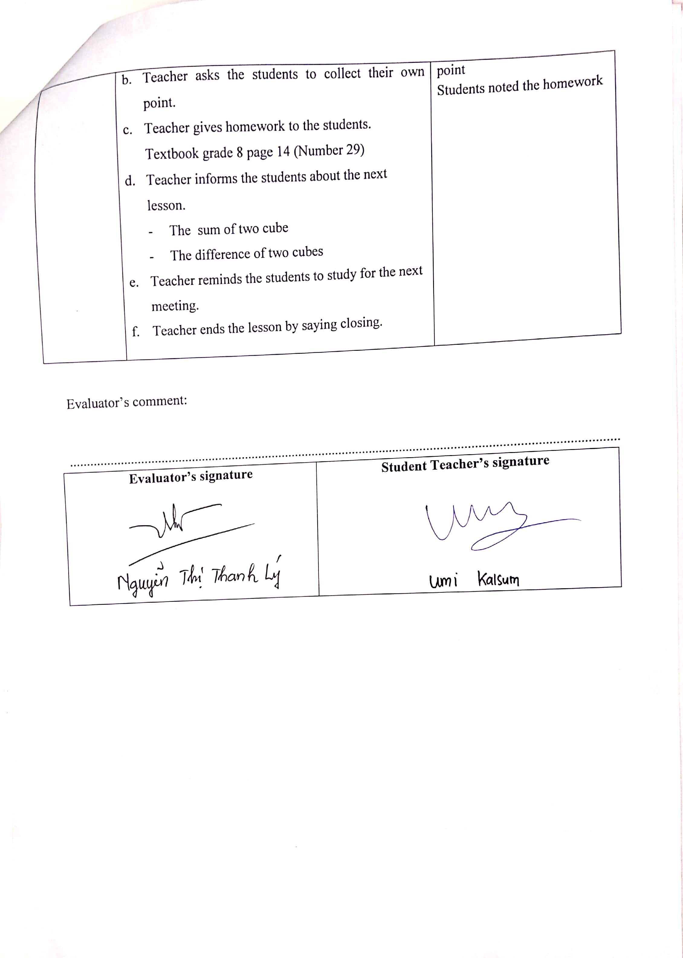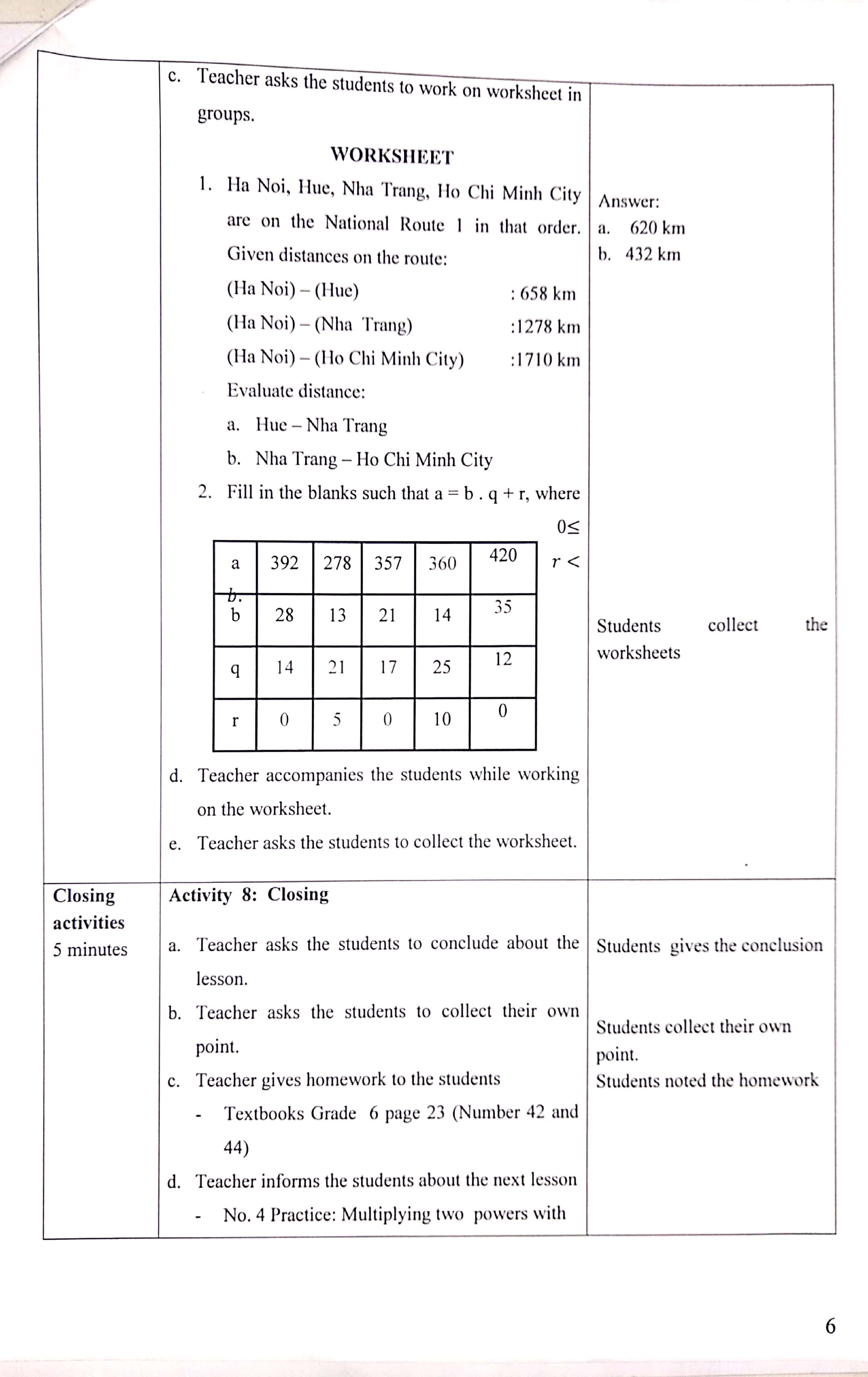 Teaching practice in class 8A6