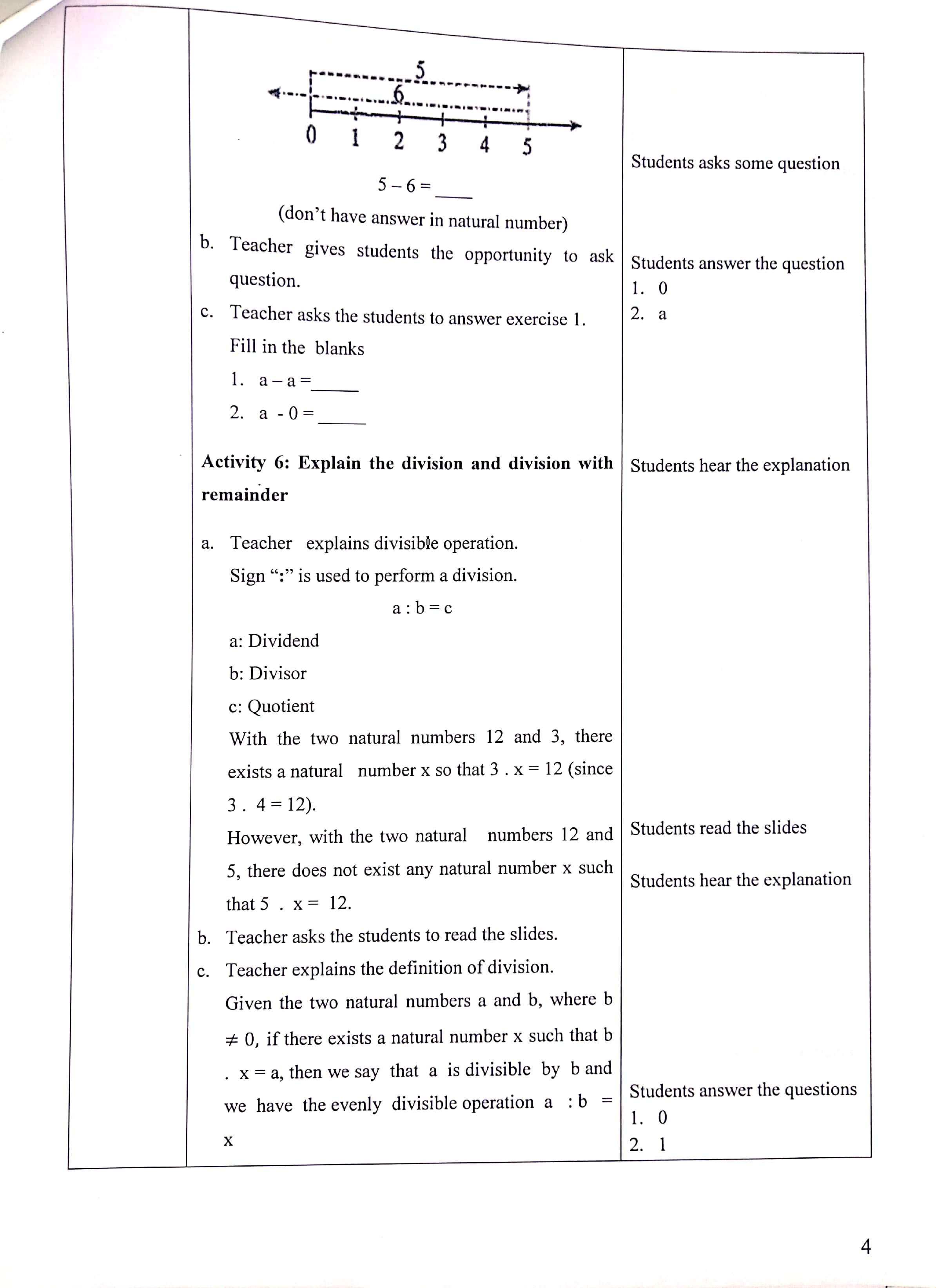 Teaching Plan of Subtraction and Division